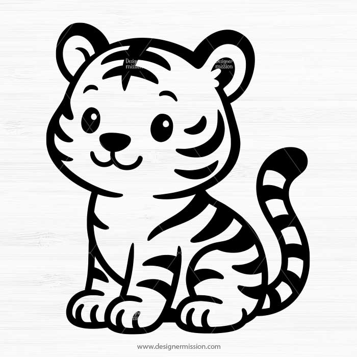 Bring joy to your crafts with this adorable sitting tiger SVG featuring bold outlines and a playful expression. Designed for Cricut, Silhouette, and laser cutting, this file is perfect for baby clothes, nursery prints, birthday party decorations, and more. High-quality cut file with commercial use license included.