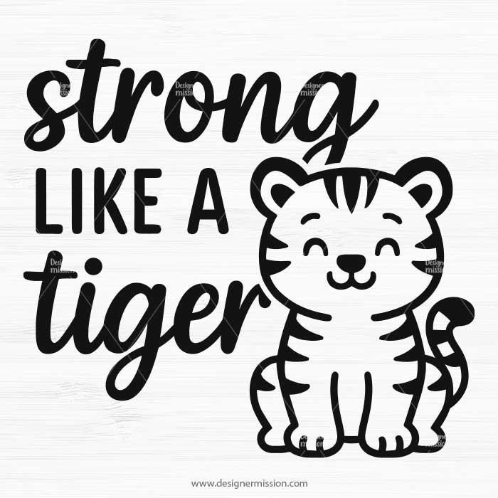 Show off your wild strength with this adorable tiger quote SVG featuring the phrase “Strong Like a Tiger” and a smiling baby tiger illustration. Perfect for Cricut, Silhouette, and laser cut crafts like toddler shirts, nursery wall art, mugs, and party decor. Comes with a commercial license for easy use in personal and business projects.