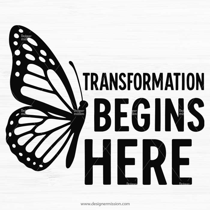 Transformation Begins Here – Butterfly Quote SVG
